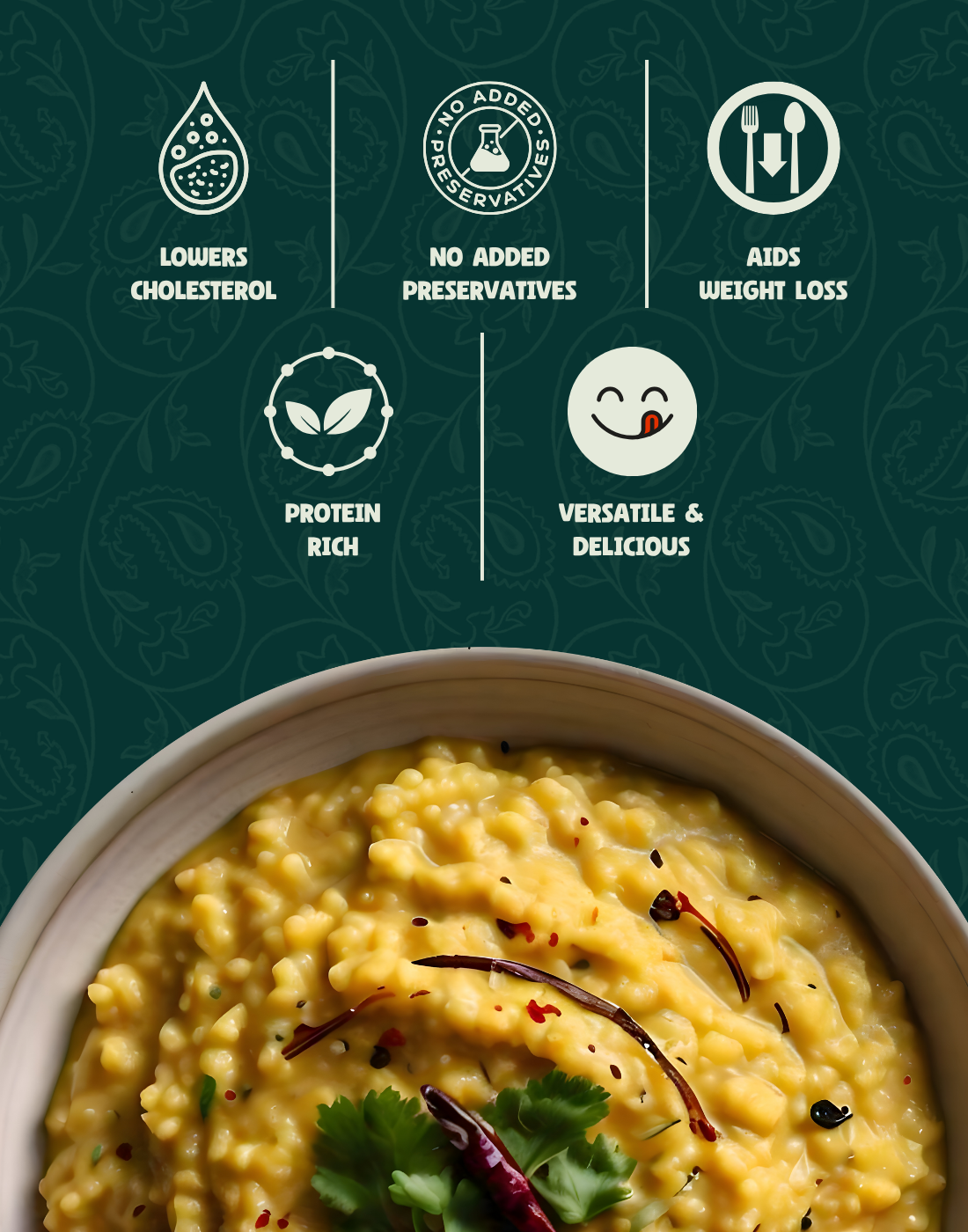 Enjoy the wholesome goodness of foxtail millet with lentils and spices in this easy-to-cook khichdi mix. Rich in protein, fiber, and essential minerals, it is diabetic-friendly with a low glycaemic index. Perfect for a quick, nutritious, gluten-free meal that supports digestion, heart health, and balanced energy.