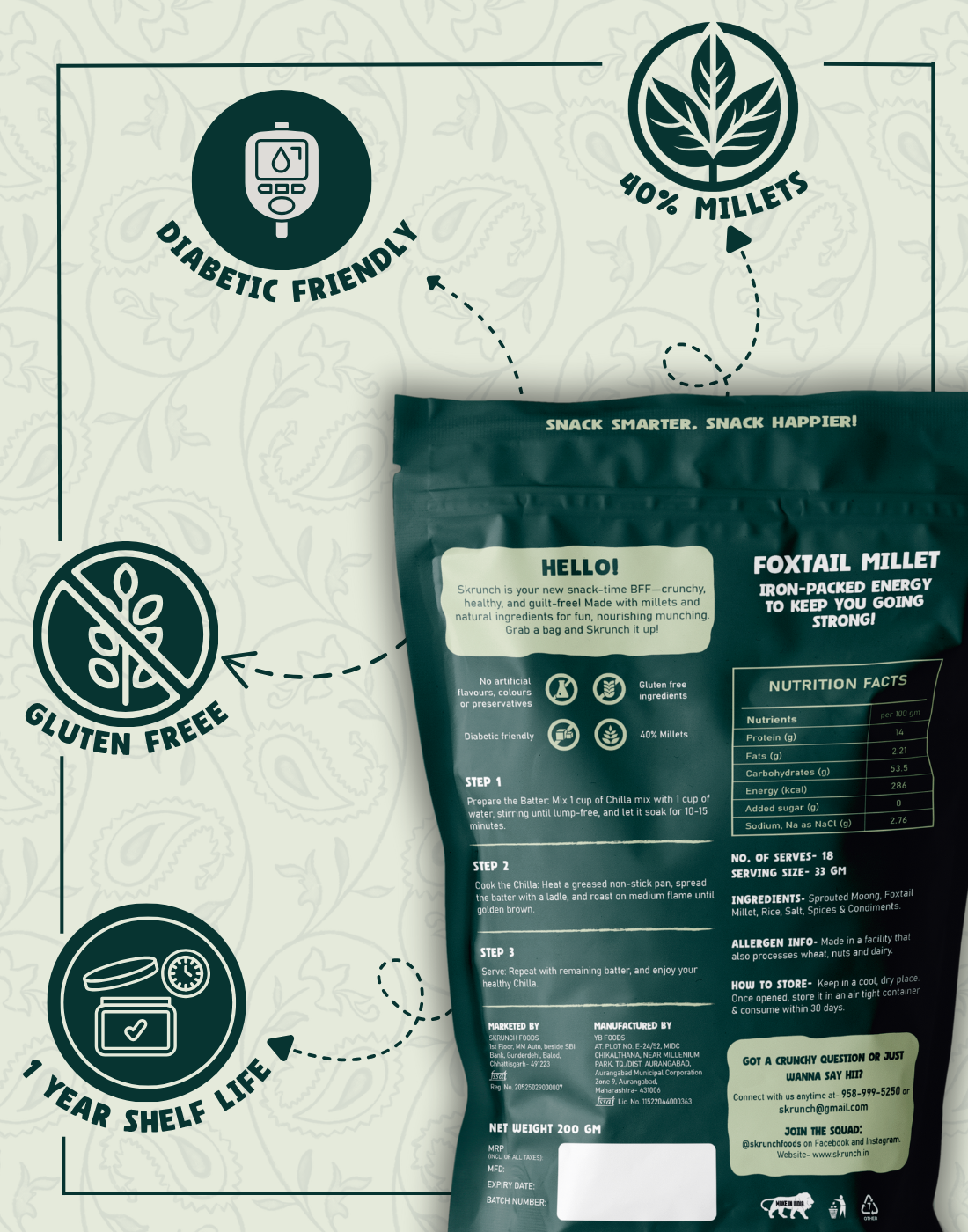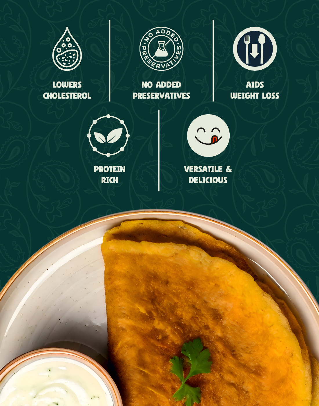 Enjoy crispy, protein-rich chillas in minutes! Made with sprouted moong and foxtail millet, this gluten-free mix is high in fiber and nutrients, easy to prepare, and packed with natural flavor—just add water and cook. Perfect for a healthy breakfast or snack, free from preservatives or additives.