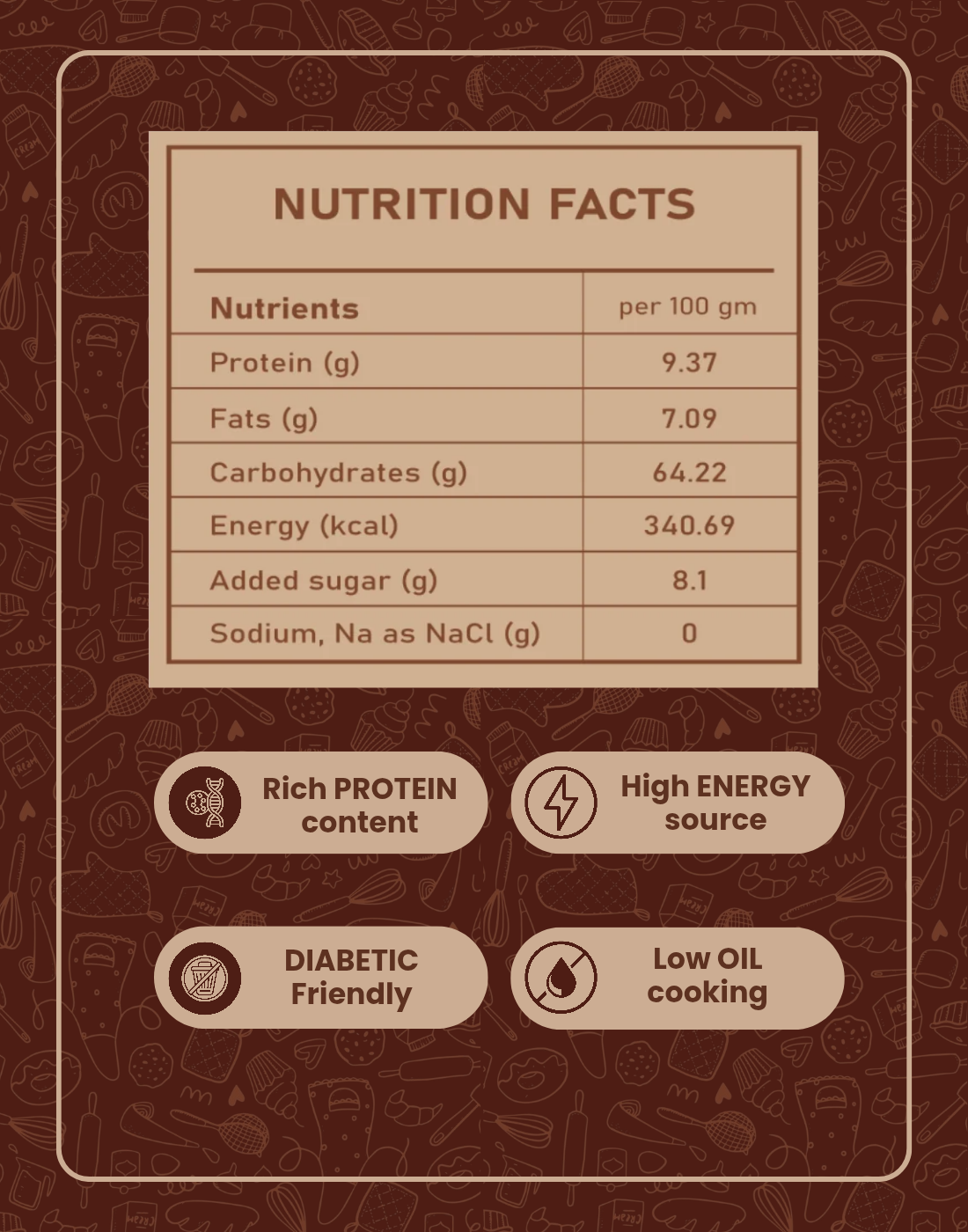 - No artificial flavours, colours, or preservatives.